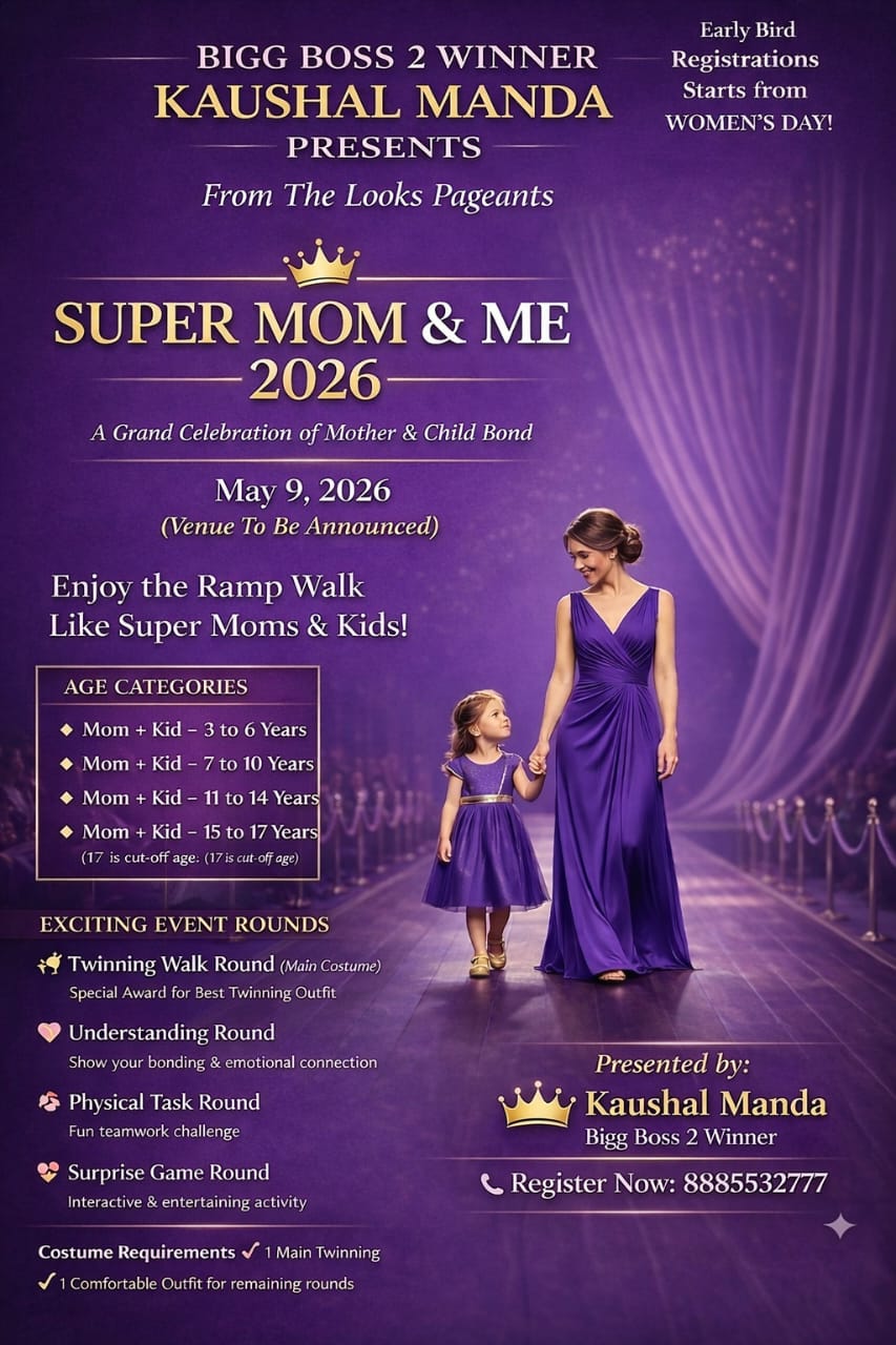 Presented by Kaushal Manda and organized by The Looks Pageants, Super Mom & Me 2026 is a heartwarming pageant that honors the special connection between mothers and their children. The event brings families together on a glamorous stage to showcase love, confidence, and teamwork while creating unforgettable memories.